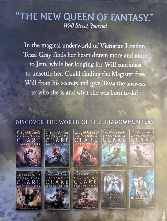 In the magical underworld of Victorian London, Tessa Gray finds her heart drawn more and more to Jem, while her longing for Will continues to unsettle her. Could finding the Magister free Will from his secrets and give Tessa the answers to who she is and what she was born to do?