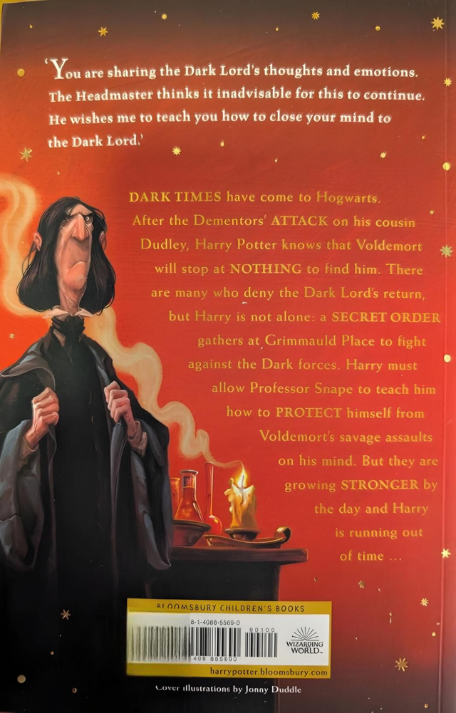 DARK TIMES have come to Hogwarts. After the Dementors' ATTACK on his cousin Dudley, Harry Potter knows that Voldemort will stop at NOTHING to find him. There are many who deny the Dark Lord's return, but Harry is not alone: a SECRET ORDER gathers at Grimmauld Place to fight against the Dark forces. Harry must allow Professor Snape to teach him how to PROTECT himself from Voldemort's savage assaults on his mind. But they are growing STRONGER by the day and Harry is running out of time.