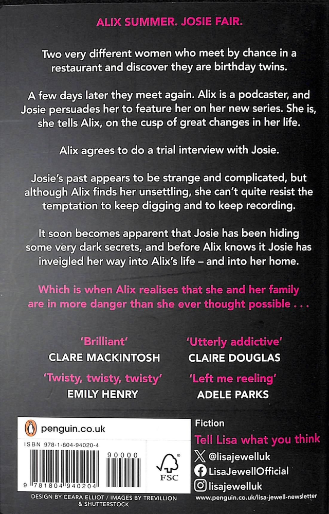 Slowly Alix starts to realise that Josie has been hiding some very dark secrets, and before she knows it Josie has cajoled her way into Alix's life - and into her home.