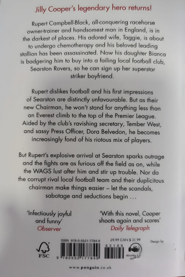 Rupert Campbell-Black, all-conquering racehorse owner-trainer and handsomest man in England, is in the darkest of places. His adored wife, Taggie, is about to undergo chemotherapy and his beloved leading stallion has been assassinated. Now his daughter Bianca is badgering him to buy into a failing local football club, Searston Rovers, so he can sign up her superstar striker boyfriend.