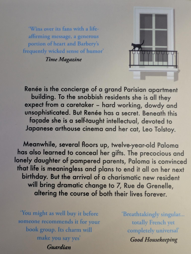 Renée is the concierge of a grand Parisian apartment building. To the snobbish residents she is all they expect from a caretaker - hard working, dowdy and unsophisticated. But Renée has a secret. Beneath this façade she is a self-taught intellectual, devoted to Japanese arthouse cinema and her cat, Leo Tolstoy.