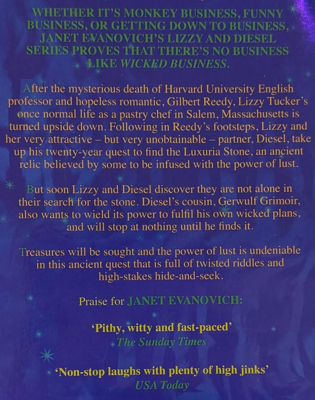 After the mysterious death of Harvard University English professor and hopeless romantic, Gilbert Reedy, Lizzy Tucker's once normal life as a pastry chef in Salem, Massachusetts is turned upside down. Following in Reedy's footsteps, Lizzy and her very attractive - but very unobtainable - partner, Diesel, take up his twenty-year quest to find the Luxuria Stone, an ancient relic believed by some to be infused with the power of lust.